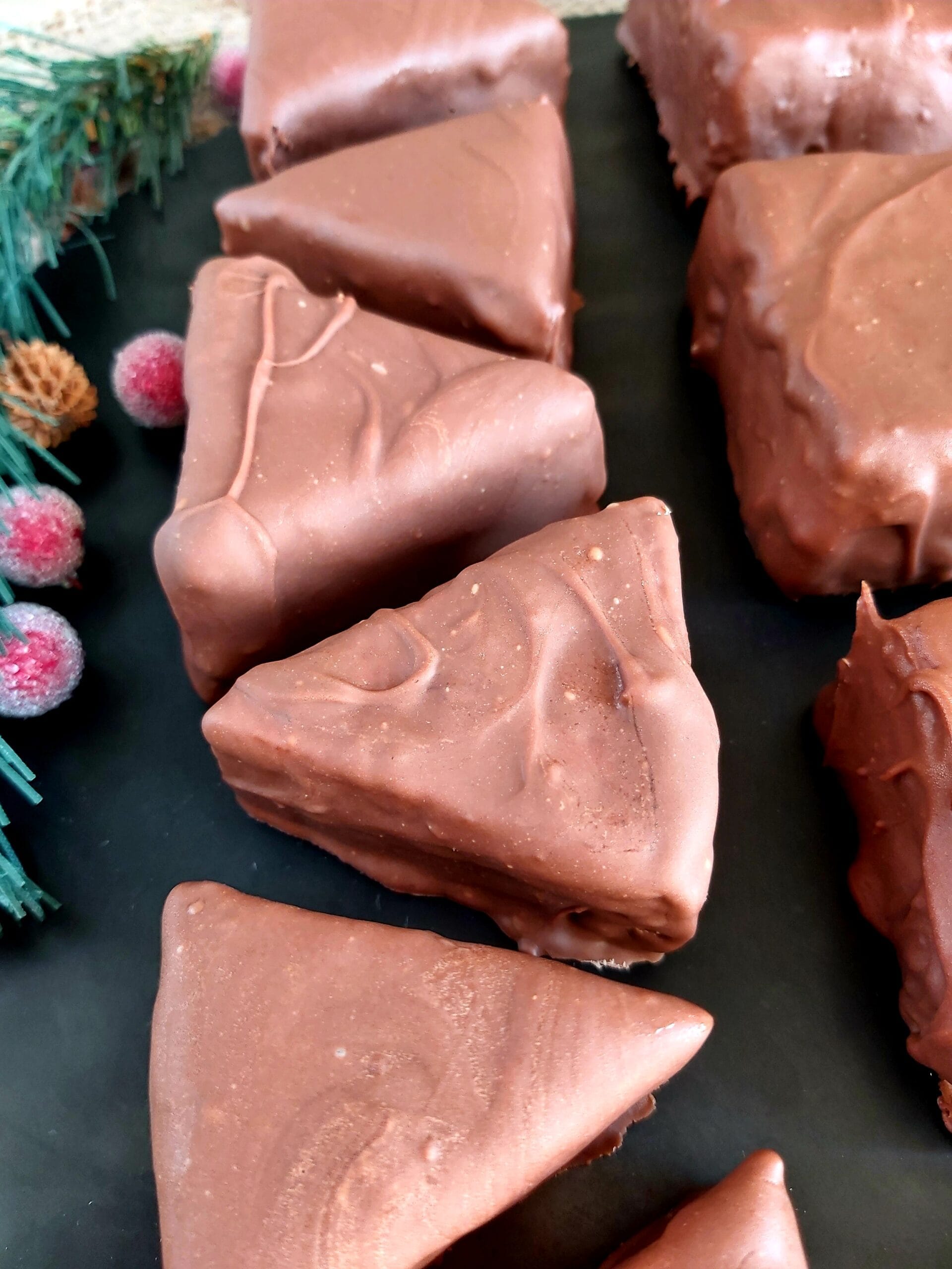 Originating from Germany, Baumkuchen, or “tree cake,” is known for its distinctive ring-like layers that are reminiscent of tree rings. Cut into triangles and then covered in chocolate, they can certainly add a festive and celebratory atmosphere to your dessert table.