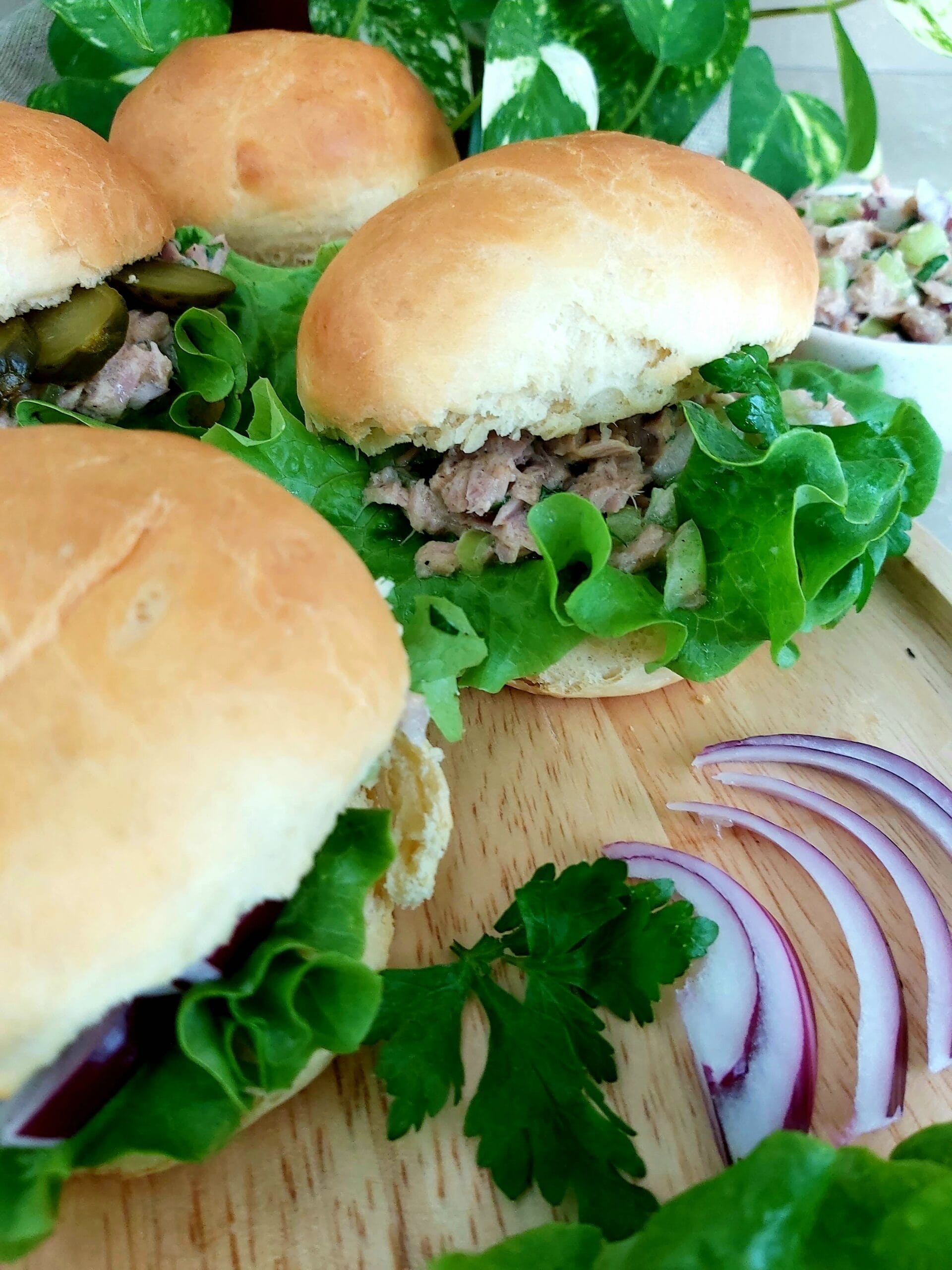 Simple yet delicious, these homemade tuna sandwiches combine fluffy, soft buns with a creamy, flavourful filling. With every bite, you’ll enjoy a balanced mix of crunch, spice, and the familiar flavour of classic tuna salad—all in a fresh, homemade bun!
