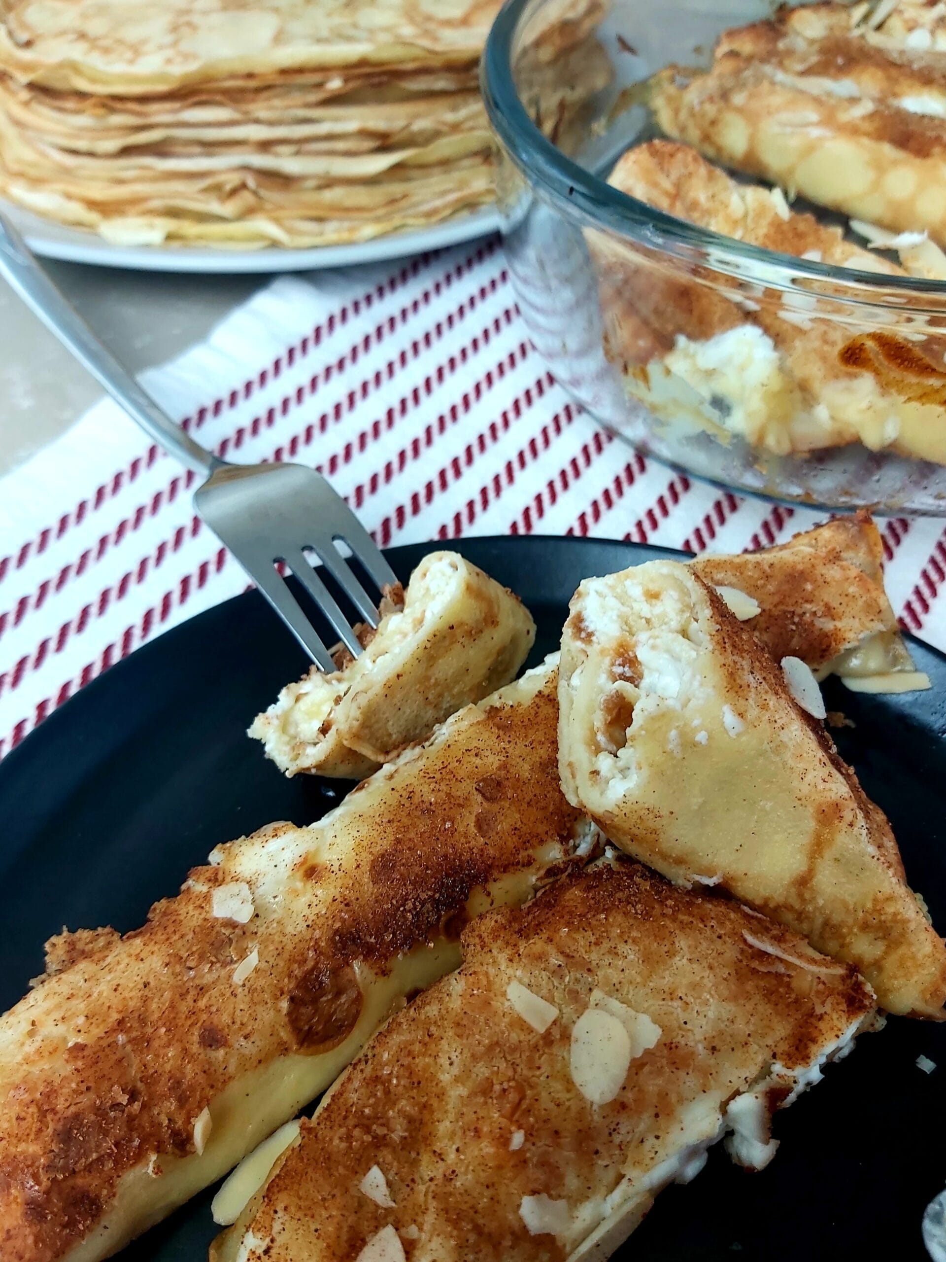 For even more indulgence, spread a thin layer of cream cheese on the rolled crêpes before baking. Sprinkle a generous handful of sliced almonds on top for a wonderfully crunchy and nutty flavour. Finally, combine the sugar and cinnamon, then sprinkle this mixture over the crêpes.