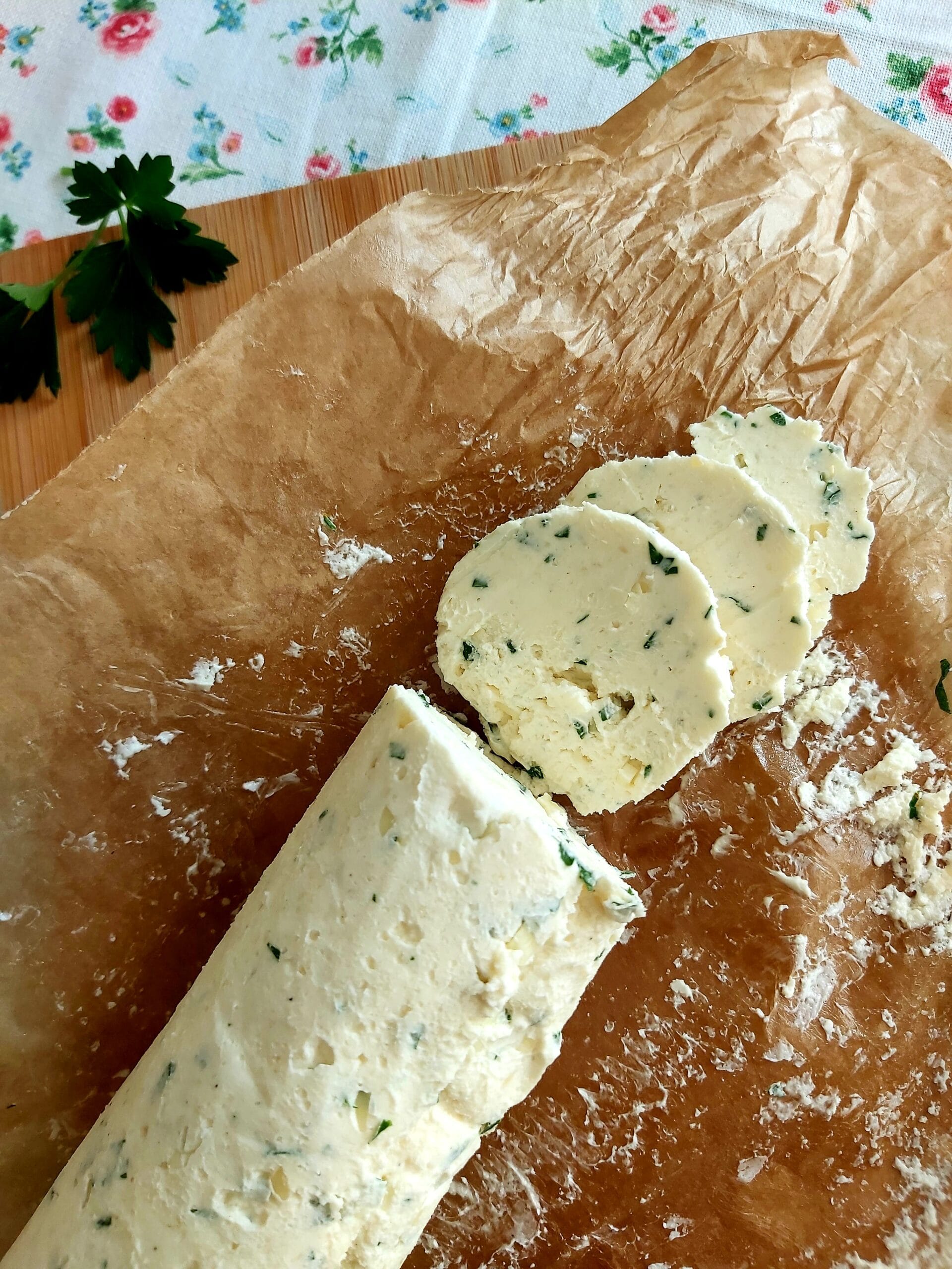 Once firm, slice the Garlic Parmesan Butter into rounds and enjoy it with your favourite food.