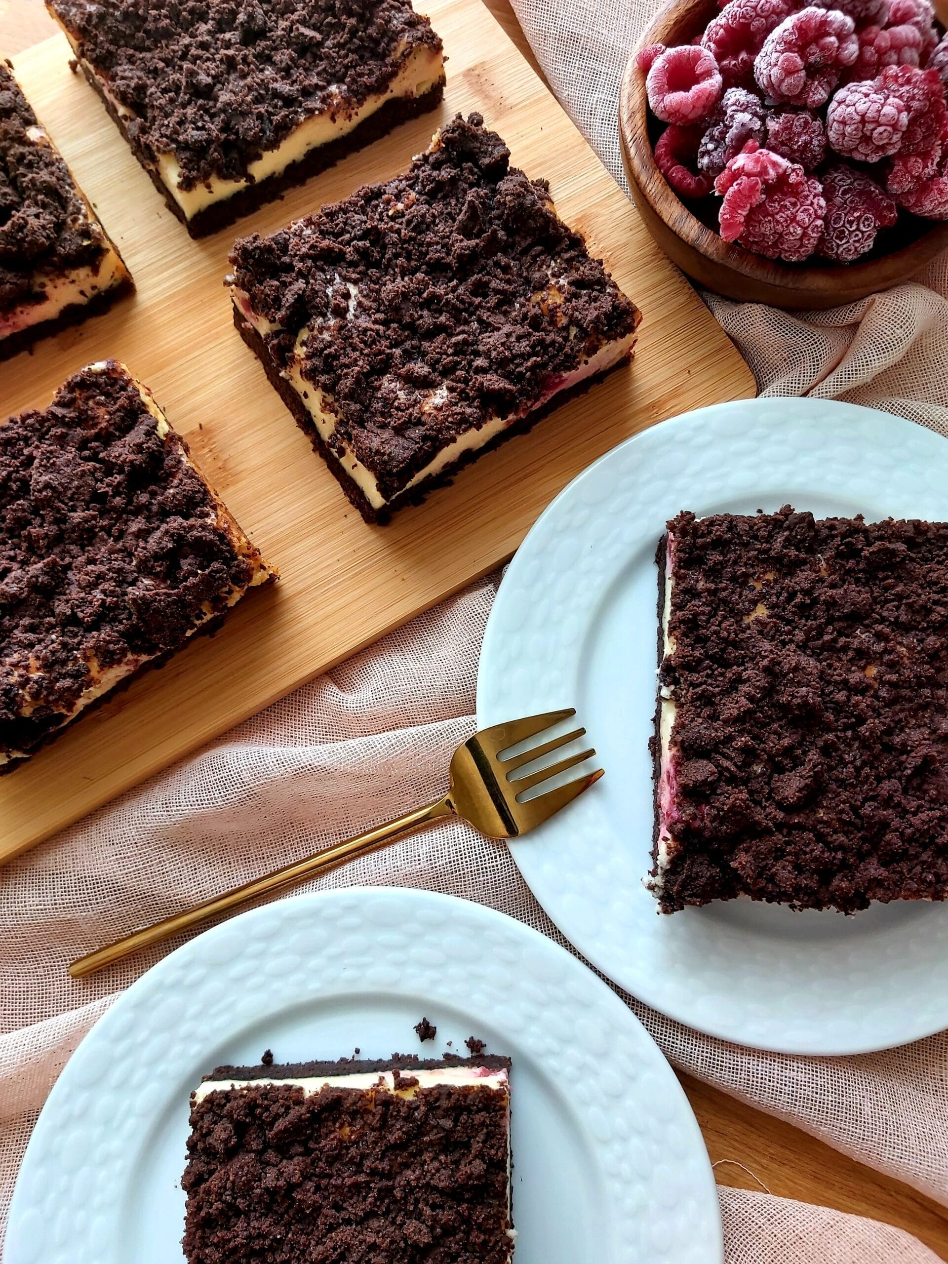 Place the baking tin in the preheated oven and bake for about 35-45 minutes, or until the filling is set, and the streusel topping is golden brown. The centre will be slightly wobbly but will firm up as it cools.