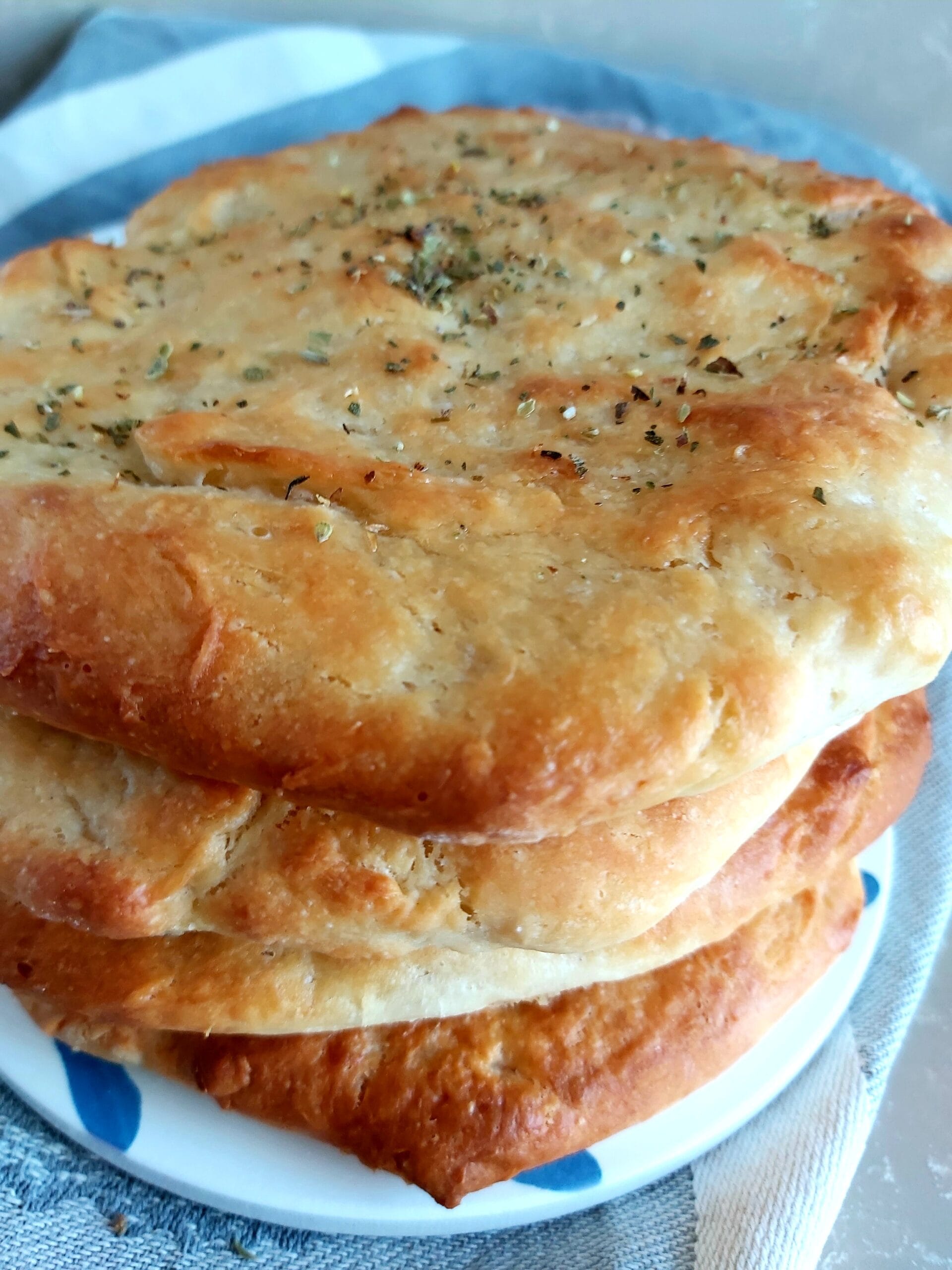 Once baked, remove the flatbreads from the oven and immediately brush them with more olive oil. Optional: You can infuse them with herbs and/or minced garlic. Serve the flatbreads warm as a delicious side dish or with your favourite dips.